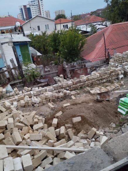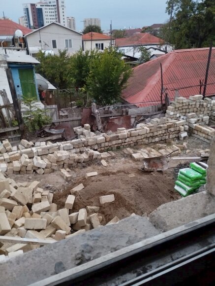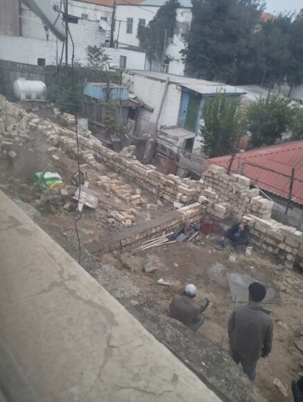 Hadisə yerindən çəkilən fotolarda da görünür ki, həyət evlərinin arasında yeni tikinti üçün qazıntı işləri aparılır, hörgü materialları və sement çuvalları əraziyə yığılır.