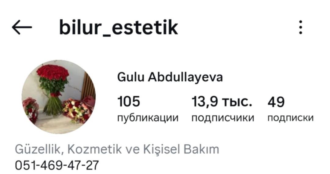 Gülbadə Abdullayevanın qanunsuz fəaliyyət göstərməsi ilə bağlı mütəmadi sosail platformalarda məlumatlar yayılmaqdadır. Yeni sosial hesablar açaraq müştərilər toplayan “Dr Gülü” Gülbadə Abdullayeva “Bilur estetic”adı fəaliyyət göstərməsi faktı aşkar olunub .