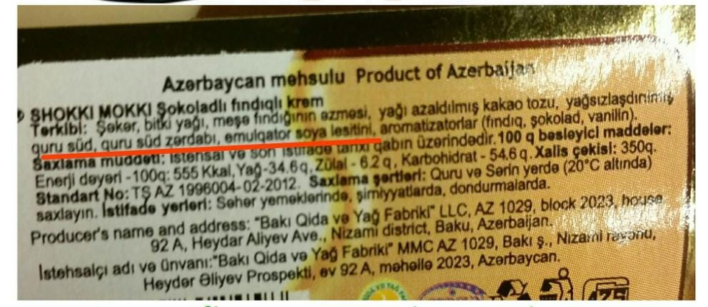 Etiketdə istofadə edilən bitki yağının növü təəssüf ki, göstərilməyib. Ən problemli məqam da yağın hansı bitki yağı olmasıdır. Adətən palma yağı və ya hidrogenləşdirilmiş yağlar olur ki, bu da ürək-damar xəstəlikləri riskini artıra, “Pis xolesterin”i yüksəldə bilər. Qısacası, əgər palma yağıdırsa, bu uşaqlar üçün tövsiyə edilmir.