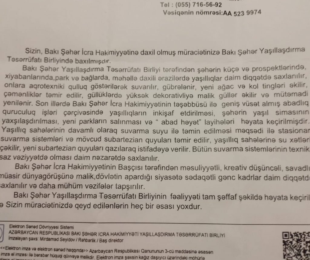 Son zamanlar Bakı Şəhər Yaşıllaşdırma Təsərrüfatı Birliyi ilə bağlı mediada çoxsaylı məlumatlar dərc olunur. Qurumun keçmiş əməkdaşı, Azərbaycan Milli Elmlər Akademiyasının Dendrologiya İnstitutunda baş aqronom işləmiş Alim Xanəhməd Əsgərov redaksiyamızla əlaqə saxlayaraq bir çox faktları üzə çıxarıb.