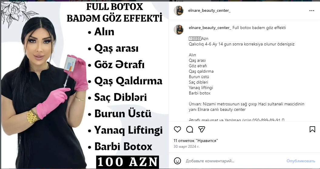Konkret fakt kimi “Elnarə Canlı Beauty Center” kosmetoloji mərkəzini göstərmək olar.